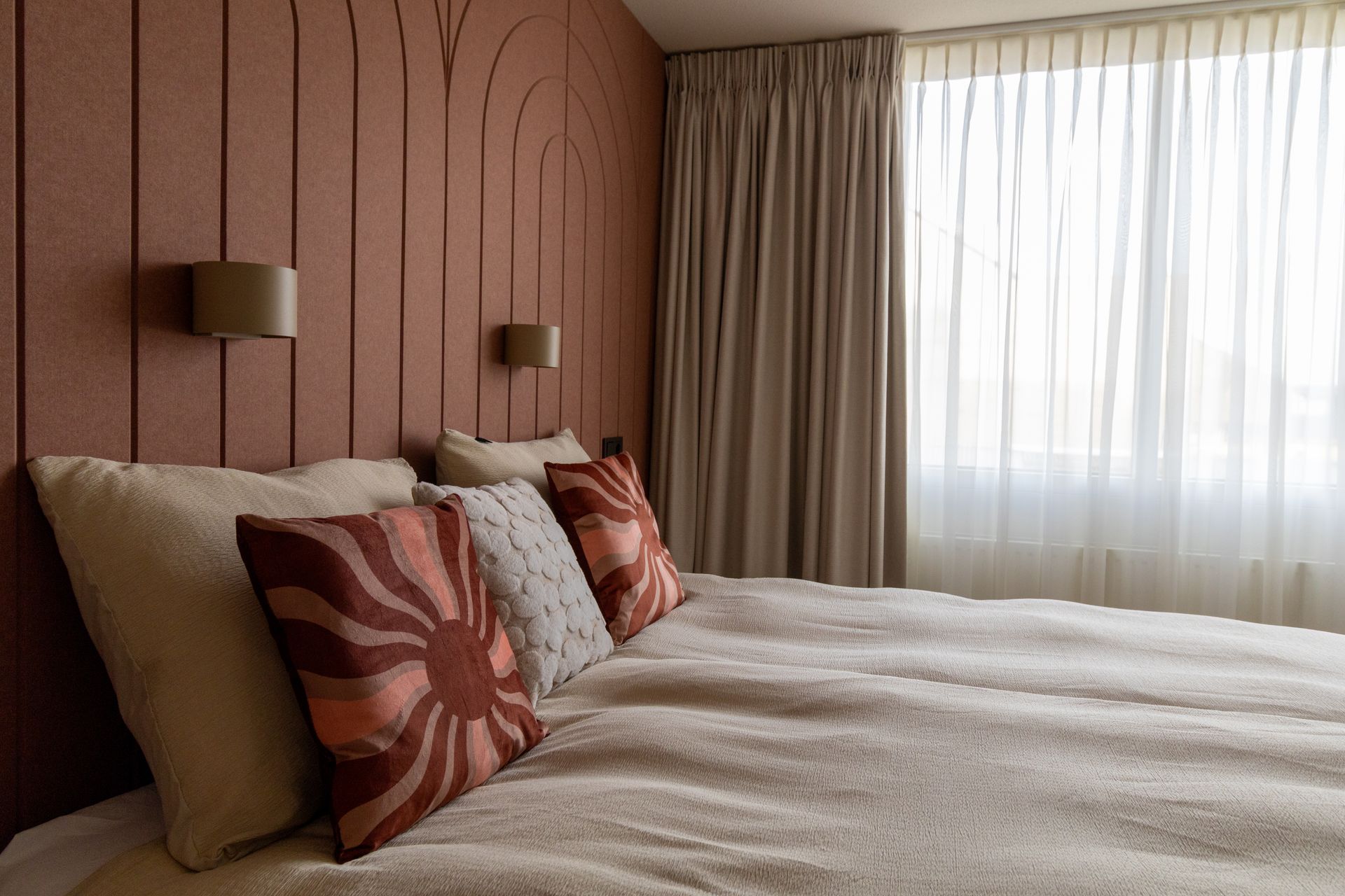 De hoofdslaapkamer is sfeervol en rustig ingericht en beschikt over een heerlijk kingsize bed (180x200 cm), waar comfort en rust samenkomen. Een fijne plek om je na een dag aan zee terug te trekken. Er is voldoende kastruimte aanwezig, zodat het direct als thuis aanvoelt.